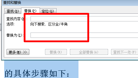 2、然后我们在弹出来的窗口中点击查找内容输入想要删除的字,“替换为”内容框为空格。
