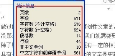 5、最后点击后我们也可以发现文章的统计,里面统计更为详细,包括段落,字符等等信息,这个按照个人需求进行参照了