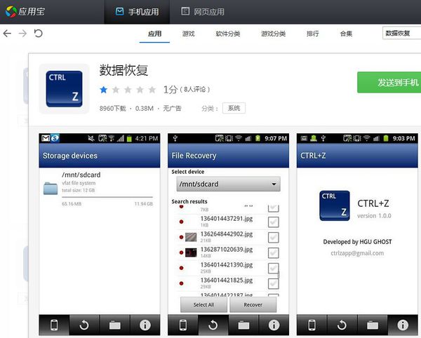 另一种办法,在应用宝找应用处输入数据恢复,就会有类似的软件出来