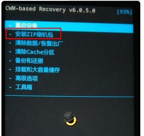 双清完成之后,返回recovery主界面,选择对手机安装刷机包,移动选择【安装ZIP刷机包】,然后【从/sdcard读取刷机包】(若是将刷机包放置在外置SD的机友请选择从external_sd读取刷机包),然后找到刚才复制在SD卡或手机自带的内存上的刷机包(zip格式),然后电源键确认刷入,如下图
