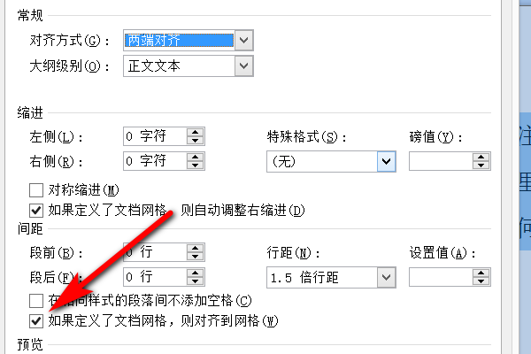 将对话框中“如果定义了文档网格,将自动调整右缩进”的单选项 和 “如果定义了文档网格,则对齐到网格”单选项的两个单选框去掉。