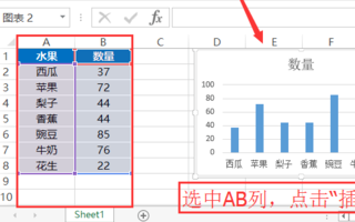 3、选中A、B列之后,在菜单栏中,找到“插入”,在图表下选择“柱状图”完成图表添加。