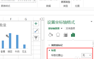 5、隐藏标签内容:在第五步的位置(“刻度线标记”)下面,可找到“标签”,将"标签位置”设置为“无”即可。