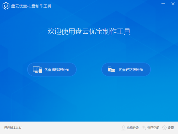 这种情况会稍微复杂一些,不过也不用太多顾虑,用盘云优宝(也是盘云公司的软件),其实讲白了就是一款U盘制作工具(说真的,我一开始也不知道U盘制作工具是干什么的,反正系统崩溃了,照做能用就行,哈哈)