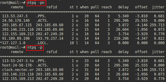 [root@localhost hct]# ntpq -p remote refid st t when poll reach delay offset jitter==============================================================================*192.168.31.134LOCAL(0) 11 u 64 128 377 0.202 73.980 412.834