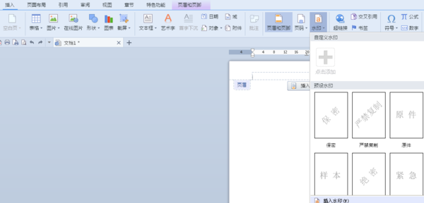 2、单击插入----水印----插入水印;