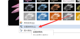 2、切换到“格式”选项卡,点击“调整颜色”下拉列表,选择“设置透明色”项。
