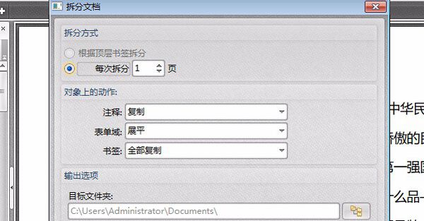 c. 我们点击之后就可以看见PDF文件中有拆分文件的设置,然后就可以将这些设置进行数据的填写,设置完之后就可以点击确定了!