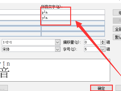3.弹出“拼音指南”对话框,它就会根据你打出的字自动注音,然后就可以看到预览的结果,单击确定。