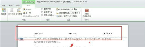 用鼠标双击页眉区域,使页眉成为焦点事件