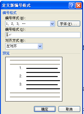 4、还可以选择定义编号格式命令,弹出定义新编号格式对话框,在对话框,可以对编号进行格式设置,如图所示。