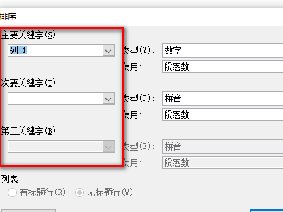 4.在排序设置页面左侧选择自己想要进行排序的关键字,如下图所示。
