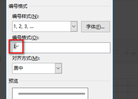 3、接着,在弹出定义新编号格窗口,将第二项编号格式中的数字1后面的点去掉,就是留下纯数字1。