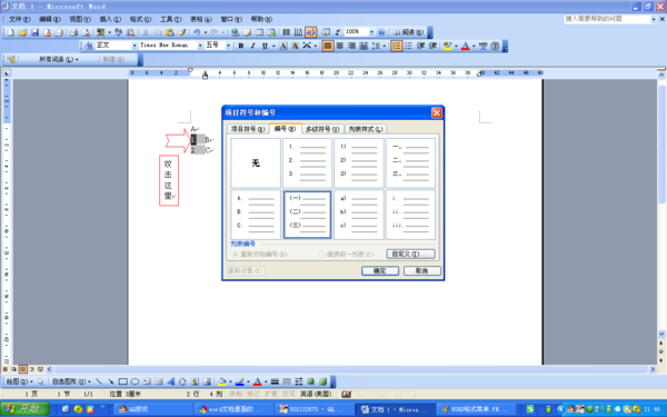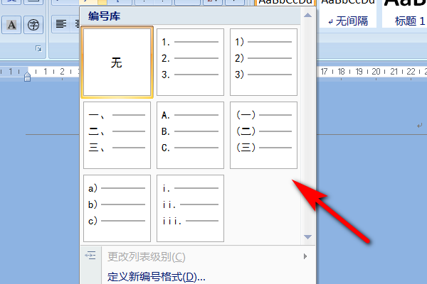 4、点击编号的下拉按钮,在下拉的选择框里找到需要的序号样式。