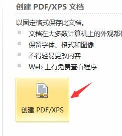 2、点击“创建PDF/XPS”按钮,如图: