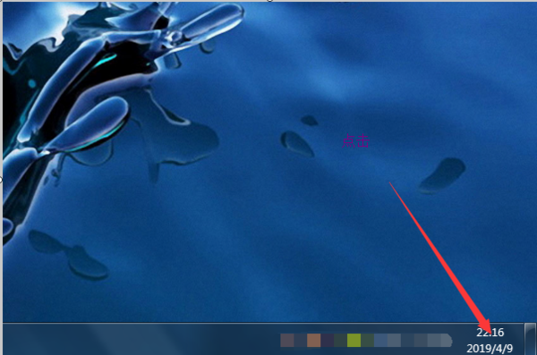 2、电脑开机后进入桌面,点击桌面右下方任务栏的时间日期一栏。