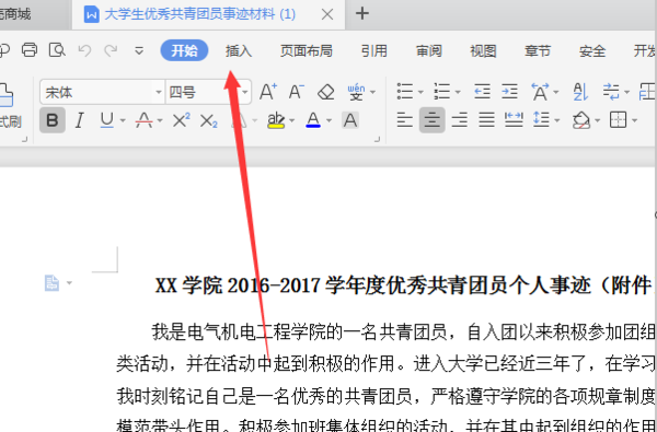 1、打开需要插入连续页码的文档,点击工具栏的哦【插入】标签。