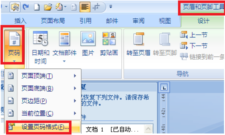 4.此时就会自动打开页眉和页脚工具的设计选型。