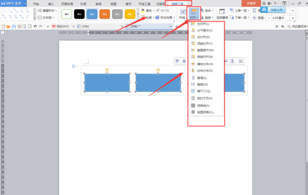 word2010中怎么把几个图形或形状等间距水平对齐