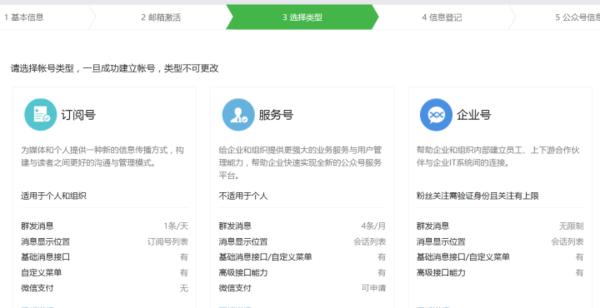 接下来的注册步骤,以订阅号为例: