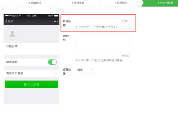 然后登记公众号信息