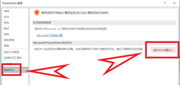 选择【信任中心】: