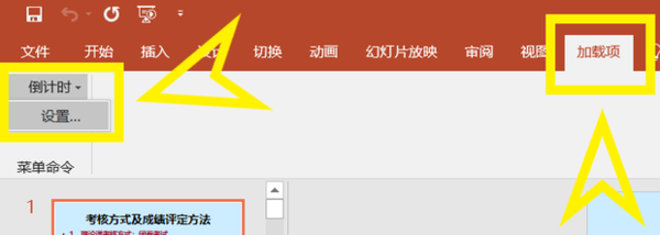 6、点击【加载项】,选择倒计时设置。