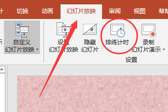 3、再在“幻灯片放映”中选择“排练计时”。