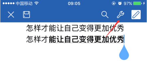 6、编辑完所有文字,该进行保存了,点击该页面下右上角中间“小扳手”的图标即可出现保存选项。点击“另存为”,给文件设置文档名称后,点击右上角的“保存”即可。