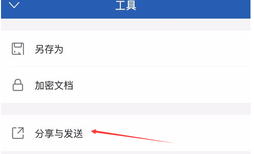 7、如果要把该文档发送给好友,还是在“小扳手”选项里进行发送,找到“分享与发送”,就可以把该文档发送给好友了。