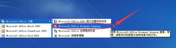 1、在【开始】菜单的“Microsoft Office工具”中打开Microsoft Office Document Imaging。
