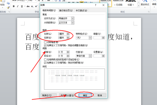 2、在缩进下方左侧/右侧文本框分别输入需要设置的距离数值,然后点击确定即可。