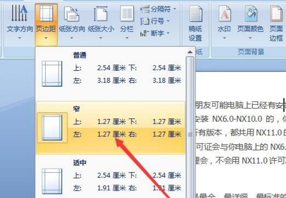 3、word自带了几种常用的页边距类型,可以根据需要从默认样式中选择。