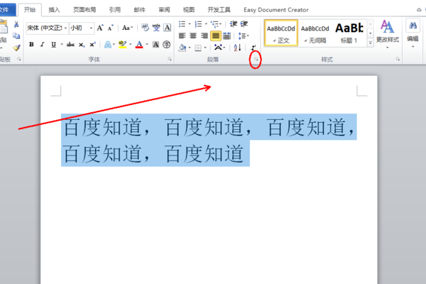 第1步,打开Word2013文档窗口,选中需要设置行间距的文档内容。然后在“开始”功能区的“段落”分组中单击显示段落对话框按钮,