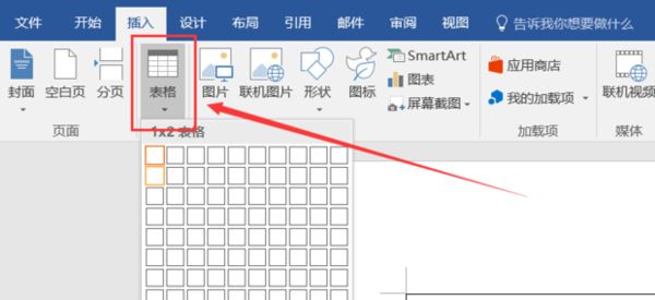 3.现在在工具栏中选择【插入】,再点击【表格】,插入一个1×2尺寸的表格;