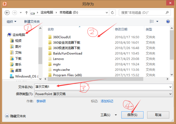 在计算机二级考试中,用电脑自带的系统制作ppt, 如何保存到考生文件夹下?