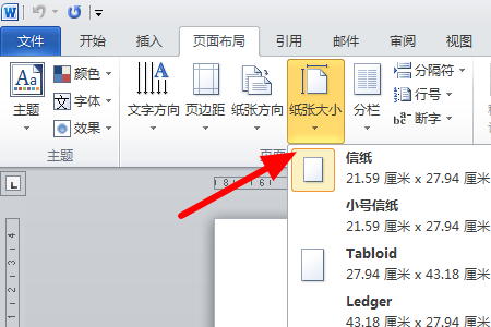 2、然后我们点击打开页面布局中的“纸张大小”,之后选择“A3”。