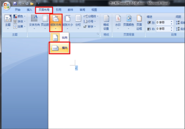 一、打开word,依次单击页面布局,纸张方向,横向,设置小报为横向。