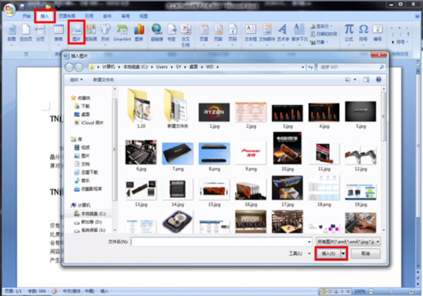 六、依次单击插入图片,然后选择准备好的素材图片,单击插入。