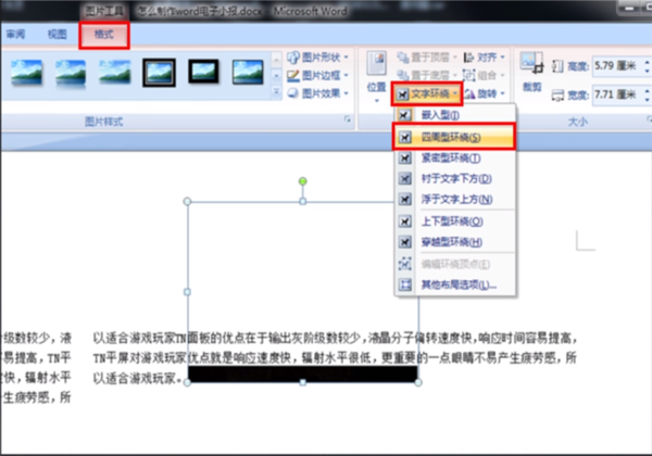 七、插入图片后,选择某个图片,然后单击格式,文字环绕,四周型环绕。