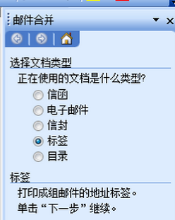 1.点击工具/信函和邮件/邮件合并,文档右侧出现下图:
