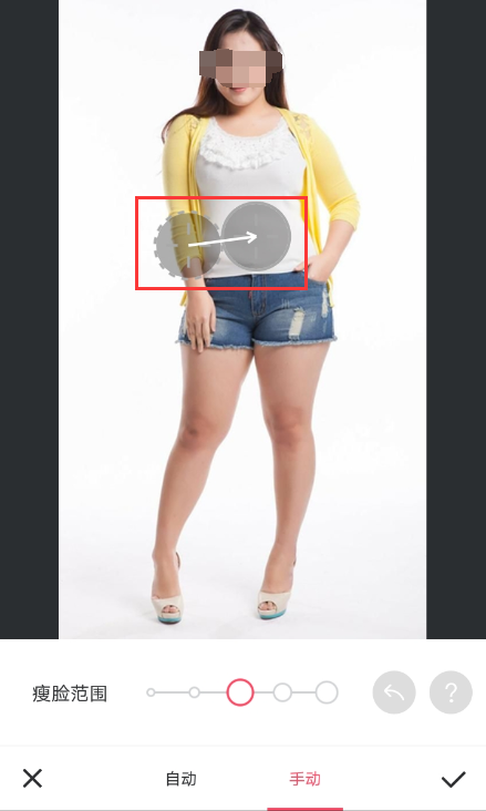 四、进入瘦脸瘦身界面后,用手指由外向内拖动要瘦身的区域。