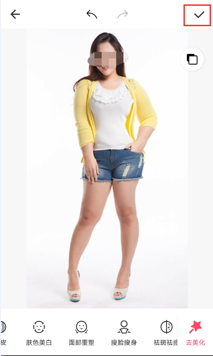 六、回到主界面后若不需要其它的美容操作,则直接按右上角的“对勾”保存图片。