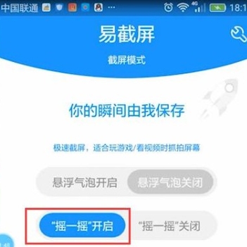 2、打开app后,在截面设置中开启摇一摇截屏。