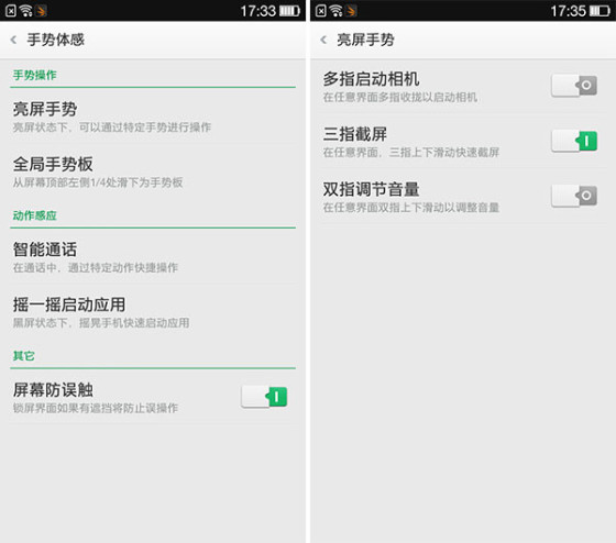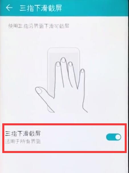 要想使用该功能,需要进入手机的【设置】-【手势体感】-【亮屏手势】设置,然后开启【三指截屏】开关即可。