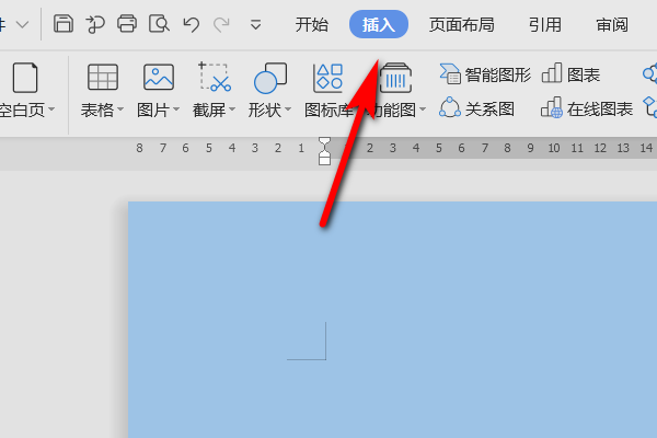 2、进入文档后,在文档的工具栏上面可以看到有个插入选项,点击它。