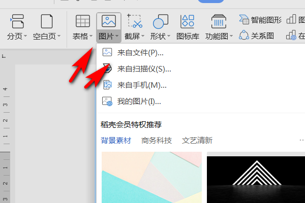 3、接着在插入的选项栏里面点击图片,并选择来自文件这个选项。