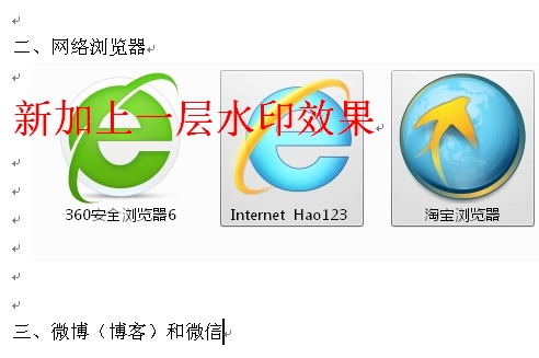 2,WORD有层的概念,把水印文字放在图片上层就OK了。