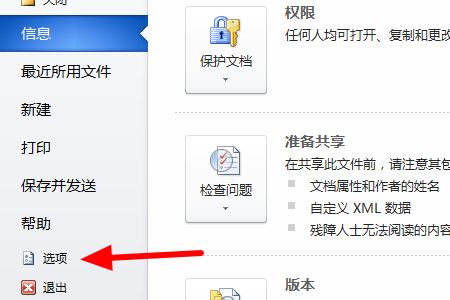 1、首先我们打开Word文档,之后点击打开文件中的“选项”。