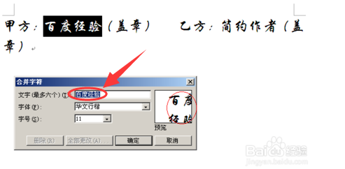 3、在【合并字符】编辑框中,“文字”框中已经显示出事先所选中的文字。